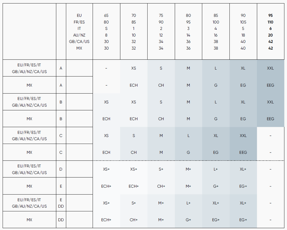 Rozmiary biustonoszy wykraczają daleko poza powszechnie znaną miseczkę DD. W sloggi oferujemy szeroki zakres rozmiarów, aby każdy mógł znaleźć idealne dopasowanie: